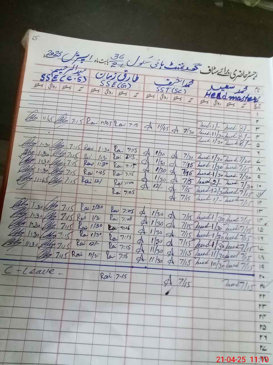 | CNIC | Full Name | Designation | R/C | Absence During Last Calender Month |