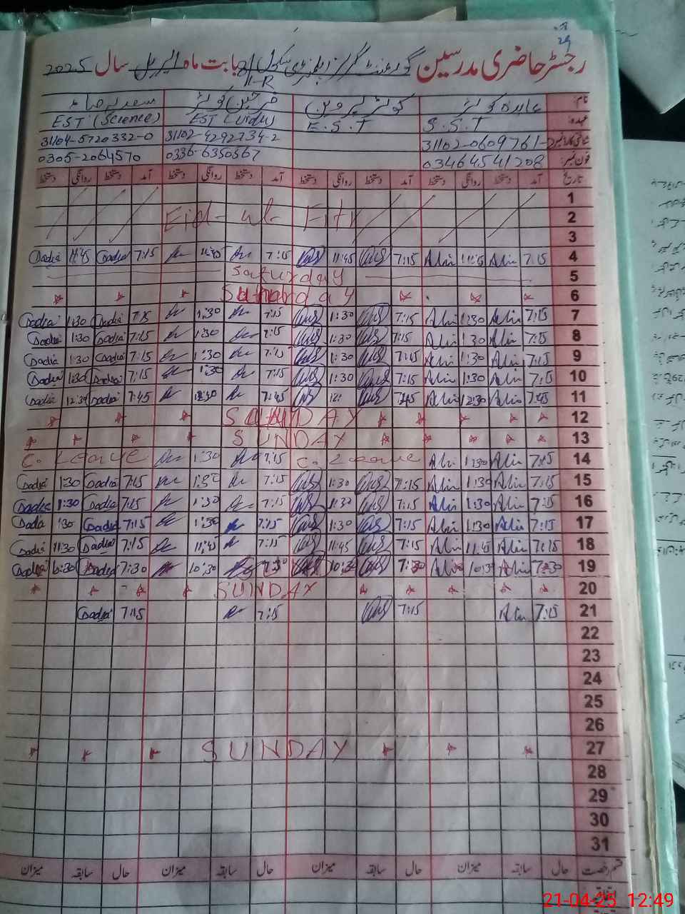 | CNIC | Full Name | Designation | R/C | Absence During Last Calender Month |