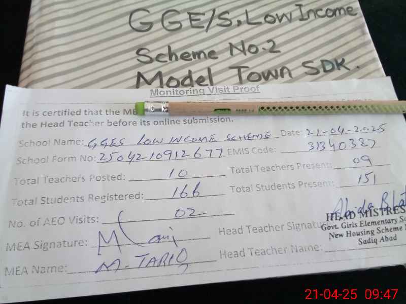 | EMIS Code: 31340387 | Name of School: GGES LOW INCOME SCHEME NO.2 MODEL TOWN | |||