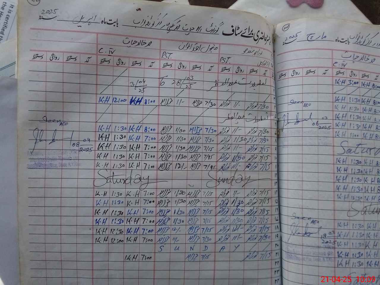 | CNIC | Full Name | Designation | R/C | Absence During Last Calender Month |