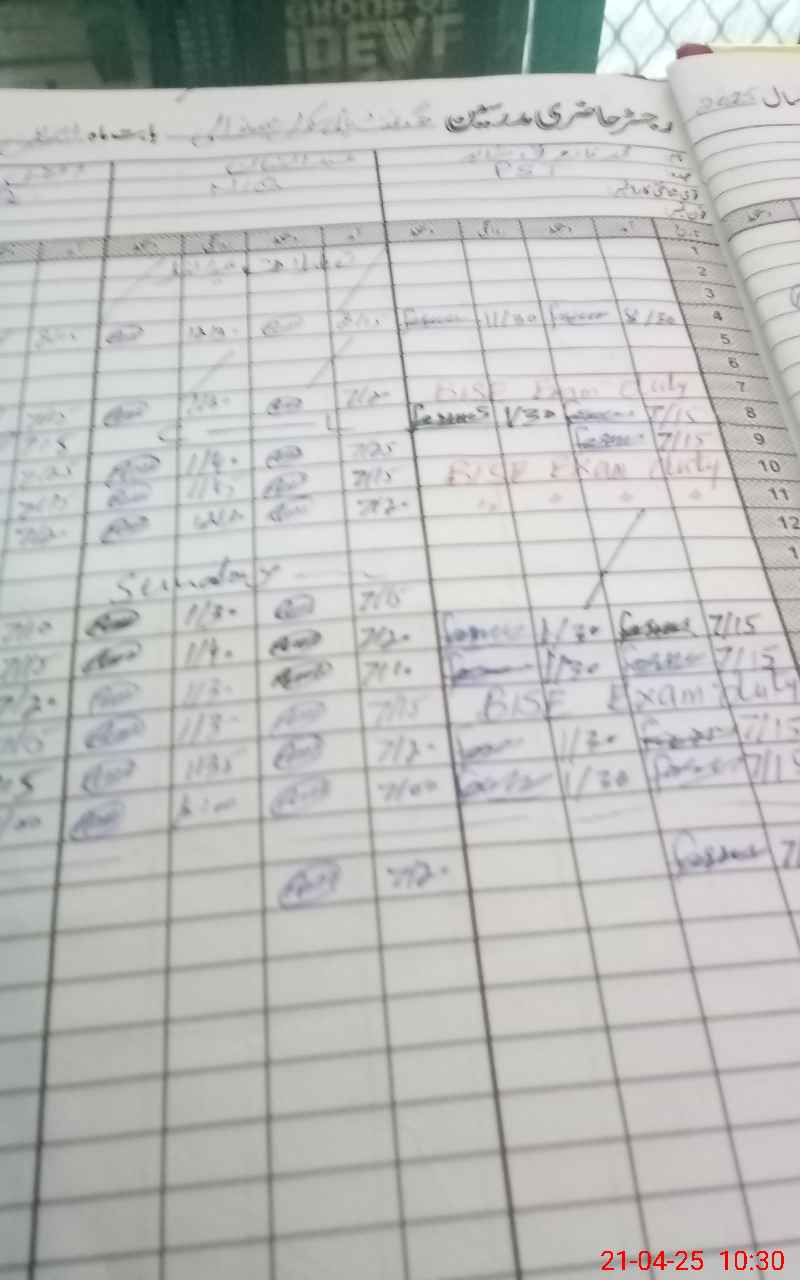 | CNIC | Full Name | Designation | R/C | Absence During Last Calender Month |