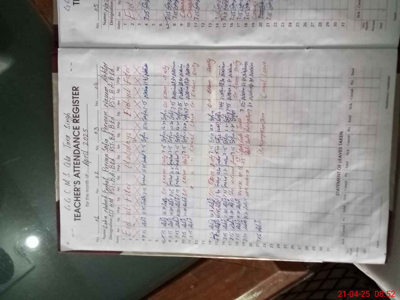 | Leave | Duty | Absent | Maternity | Medical | Ex- Pak |