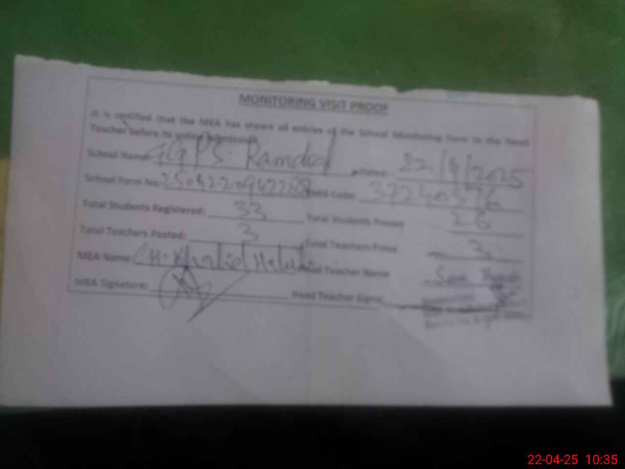 | EMIS Code: 37240376 | Name of School: GGPS RAMDIAL | |||