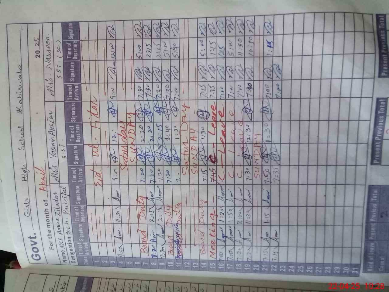 | 36**** | Ay**** Gi**** | 3 | 1 | 0 | 0 | 0 | 0 | 0 | 0 | 0 | 0 | 0 | Exam Duty |