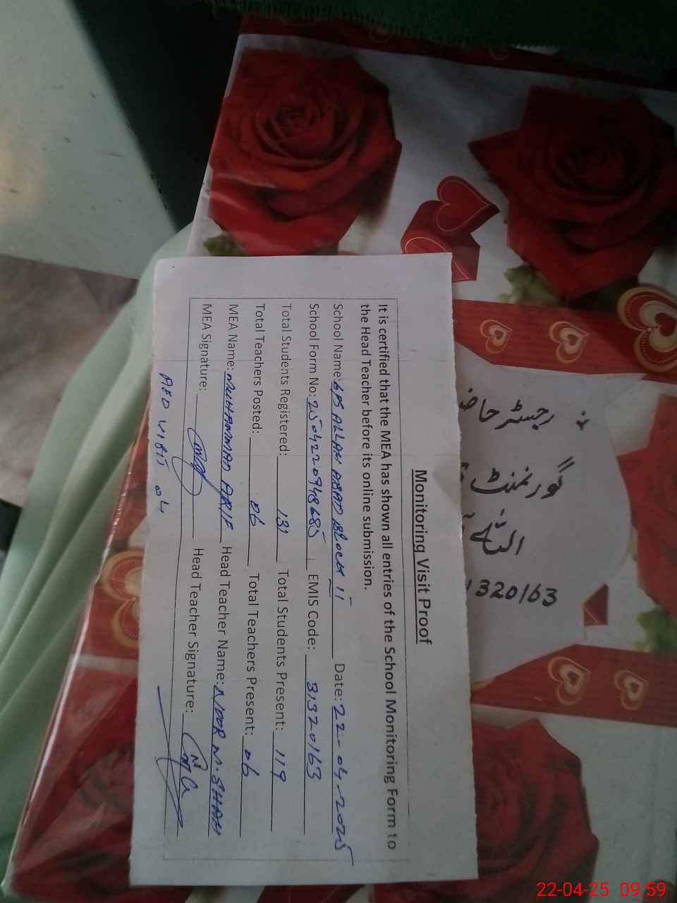 | EMIS Code: 31320163 | Name of School: GPS ALLAH ABAD BLOCK NO 2 | |||