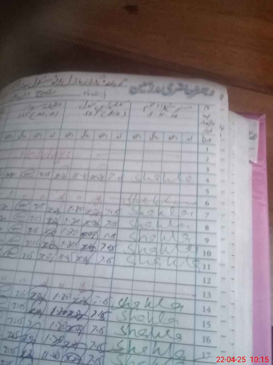 | CNIC | Full Name | Designation | R/C | Absence During Last Calender Month |