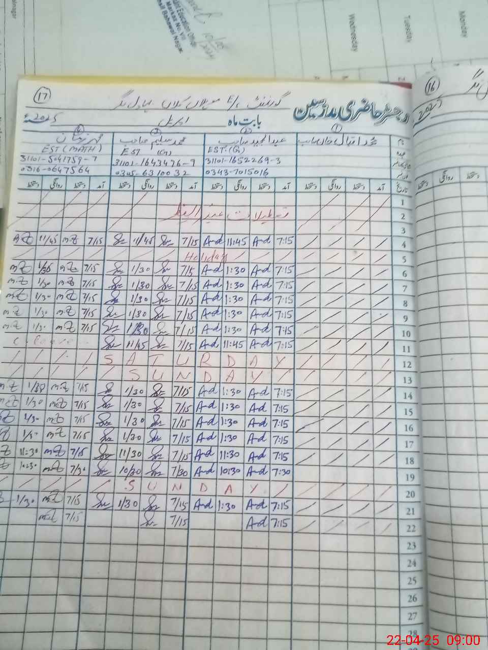 | Name: MU**** Iq**** Designation: (School Headmaster's/Headmistress's) S.S.T.(Arts) Phone/Cell Number: 03**** |