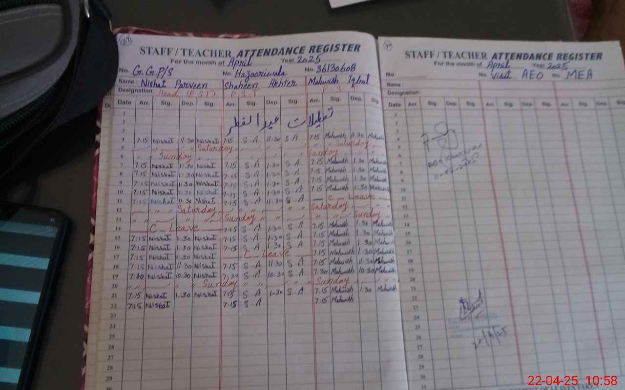 | Attendance Register | Head Teacher | MEA with School | Visit Proof |