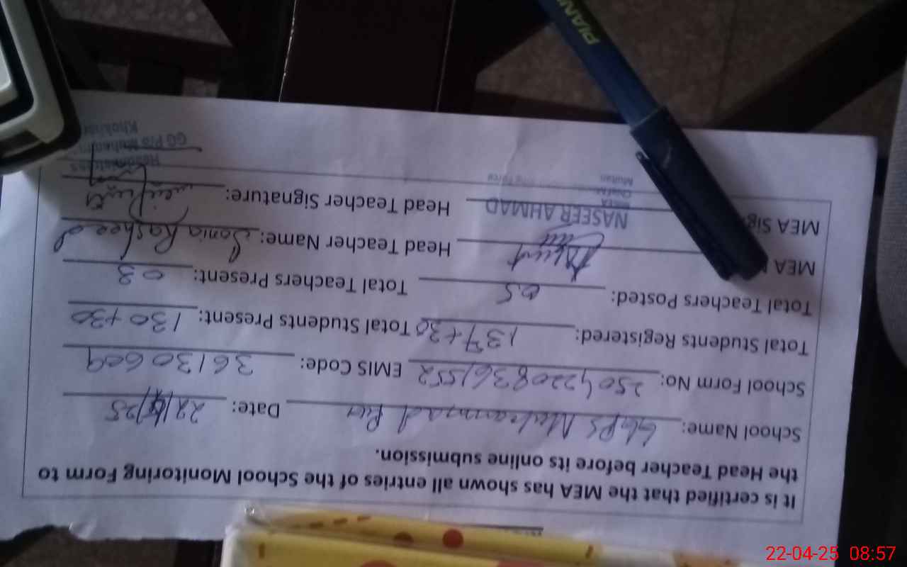 | Name: Sa**** As**** Designation: (School Headmaster's/Headmistress's) PST Phone/Cell Number: 03**** |