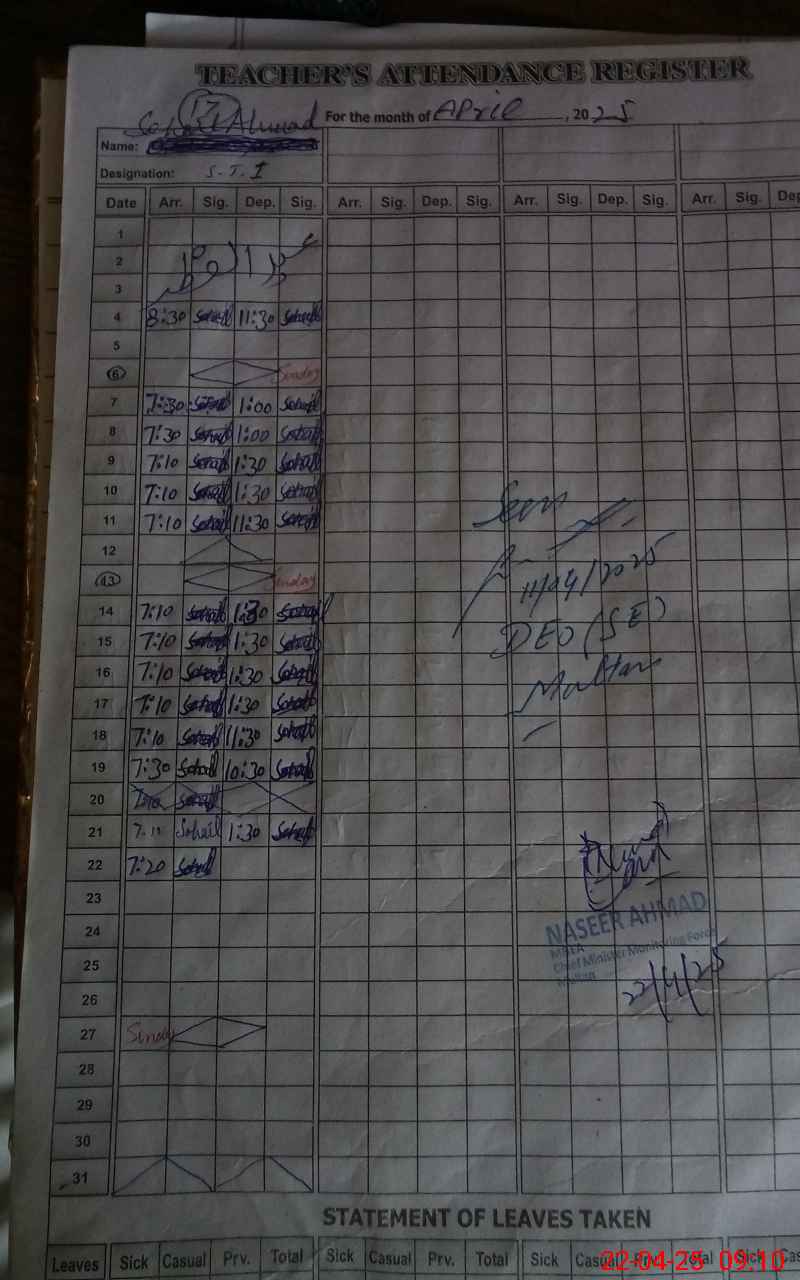 | District: MULTAN | Tehsil: MULTAN SADAR | Markaz: SECONDARY-WING | Level: High | |