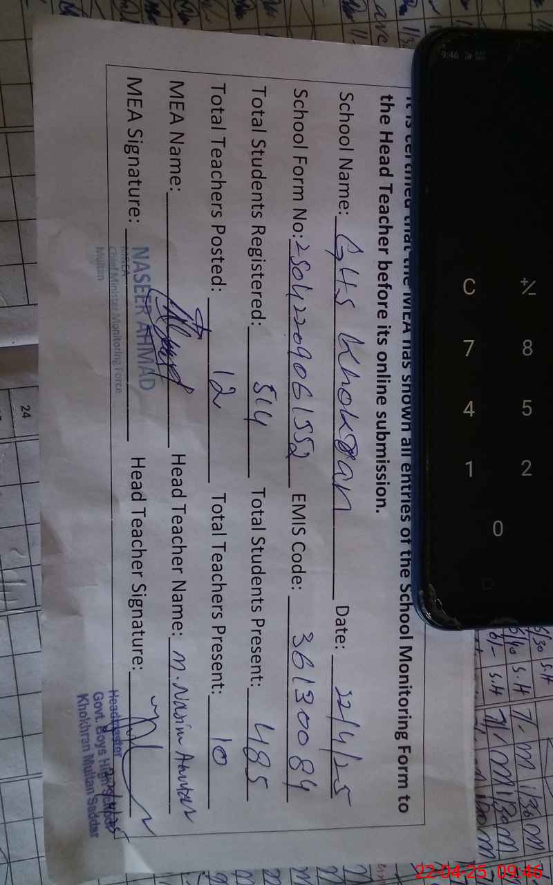 | Certified that this School was Inspected by the Undersigned MEA/DMO Today and the Information Stated Above is as Per Record. | |||||