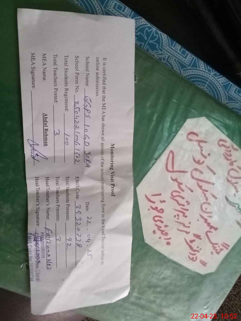 | EMIS Code: 39320738 | Name of School: GGPS 10/G.D JORA | |||