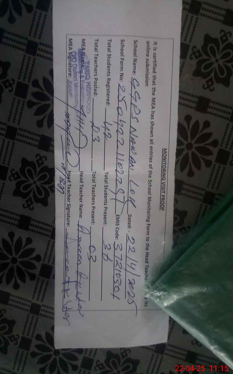 | Certified that this School was Inspected by the Undersigned MEA/DMO Today and the Information Stated Above is as Per Record. | |||||
