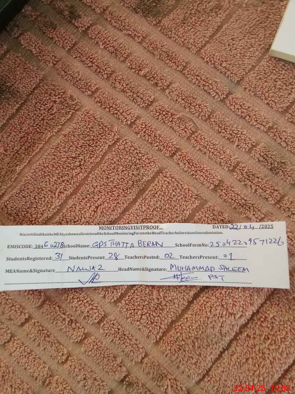 | EMIS Code: 38460278 | Name of School: GPS THATTA BERAN | |||