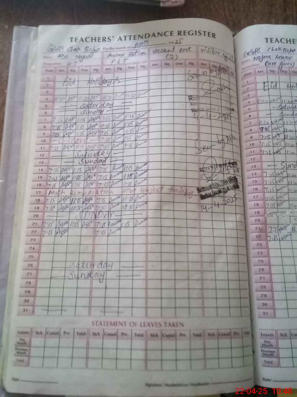 | Name: Aq**** Ma**** Designation: (School Headmaster's/Headmistress's) PST/PTC/JV Phone/Cell Number: 03**** |