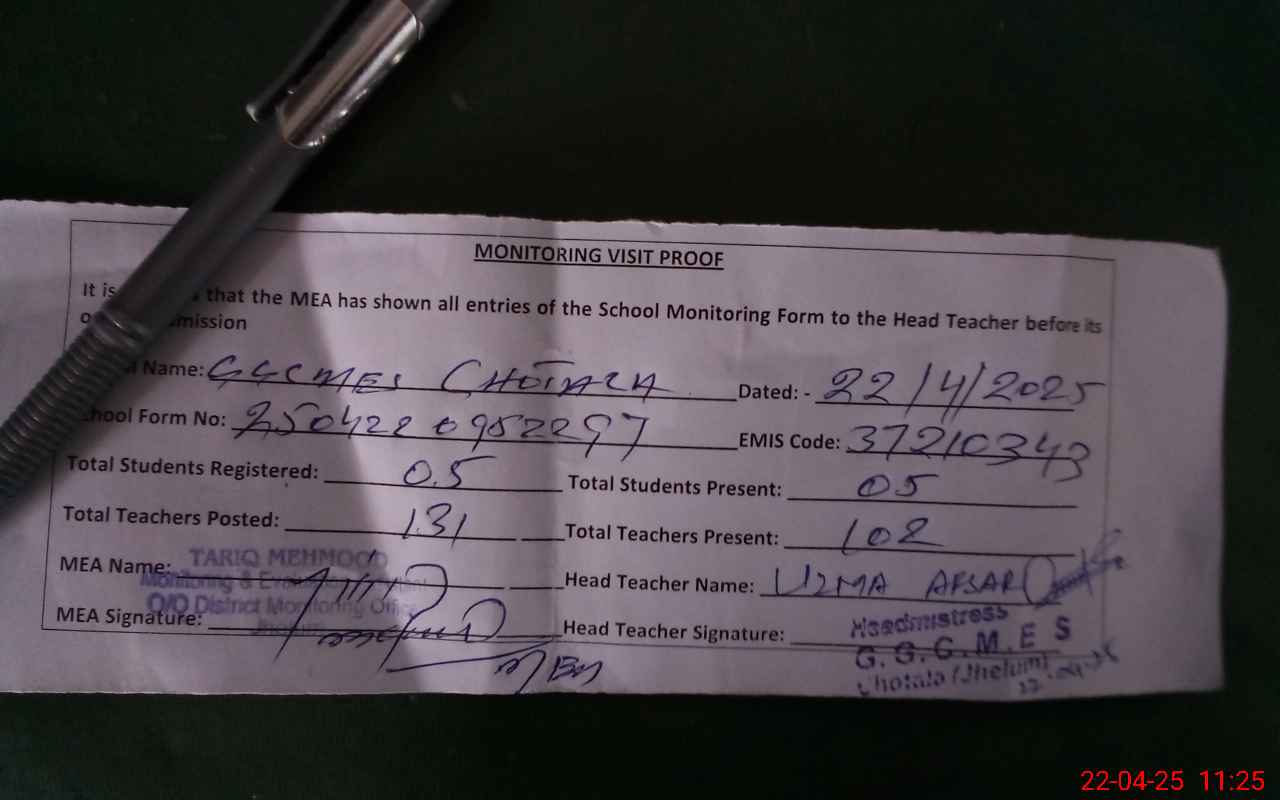 | EMIS Code: 37210343 | Name of School: GGCMES CHOTALA | |||