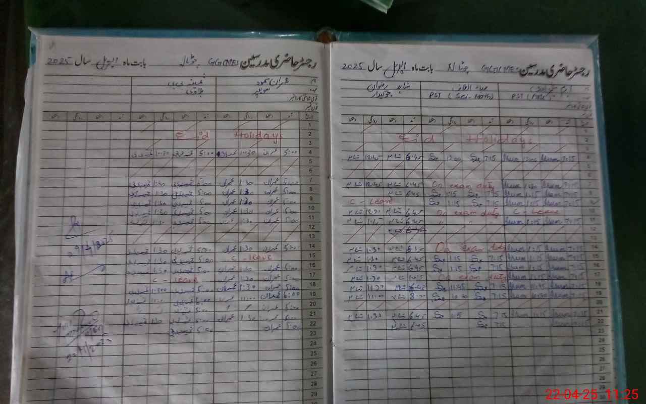 | CNIC | Full Name | Designation | R/C | Absence During Last Calender Month |