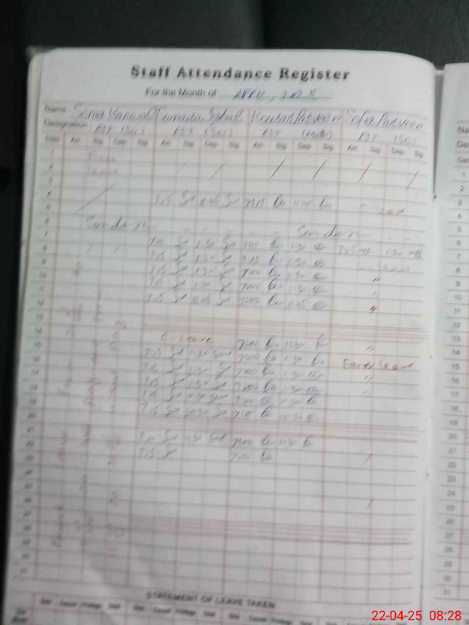 | Leave | Duty | Absent | Maternity | Medical | Ex- Pak |
