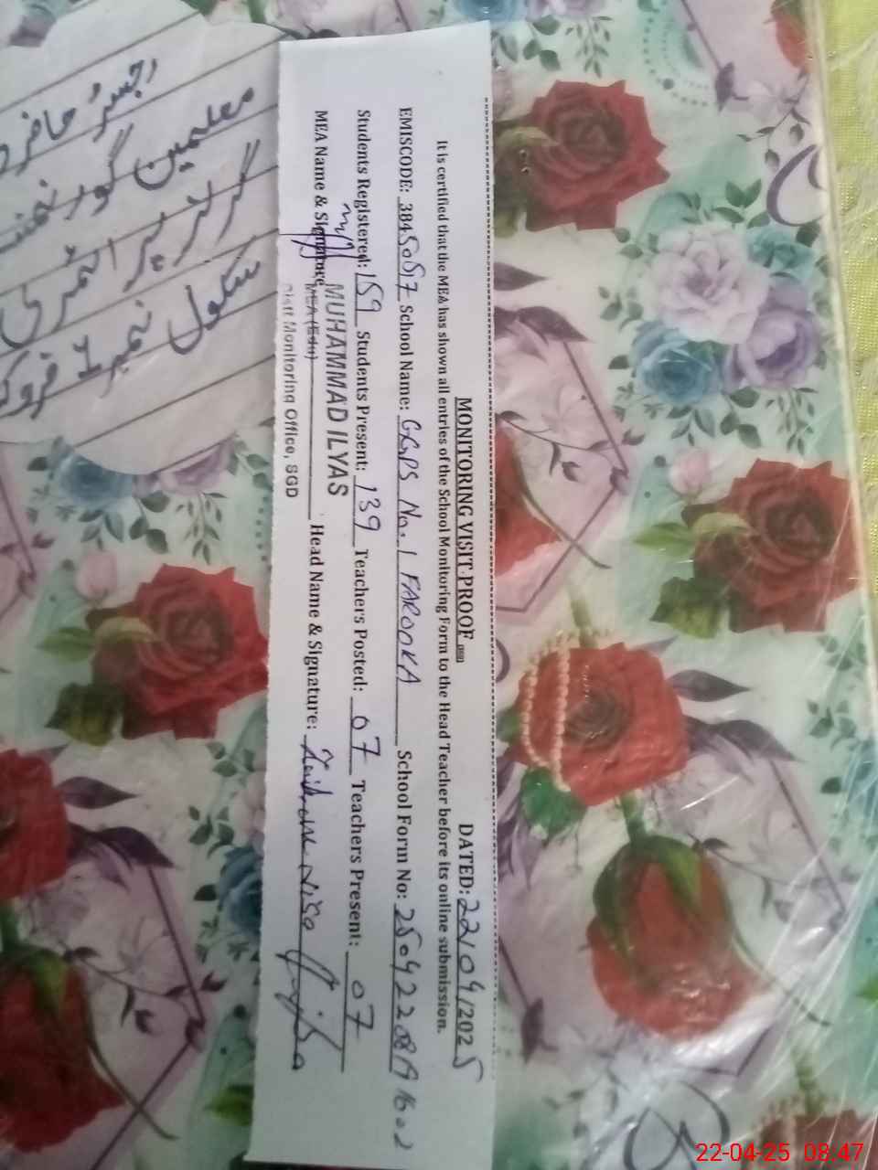 | EMIS Code: 38450517 | Name of School: GGPS NO.1 FAROOKA | |||
