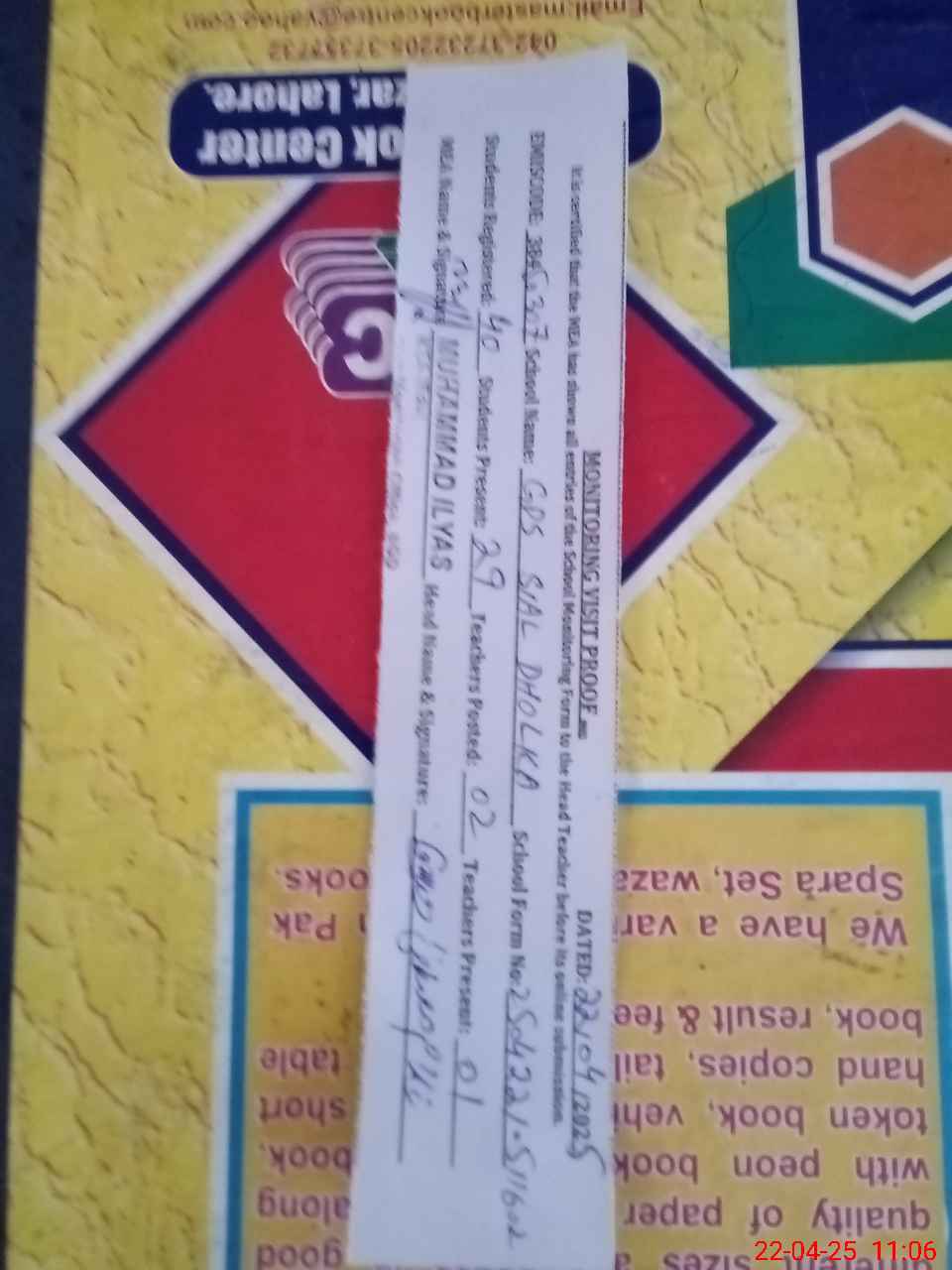 | EMIS Code: 38450307 | Name of School: GPS SIAL DHOLKA | |||