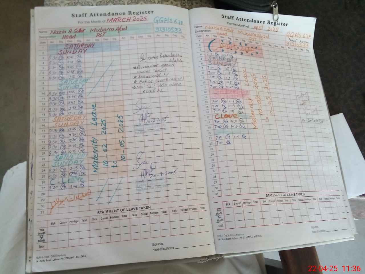 | Leave | Duty | Absent | Maternity | Medical | Ex- Pak |