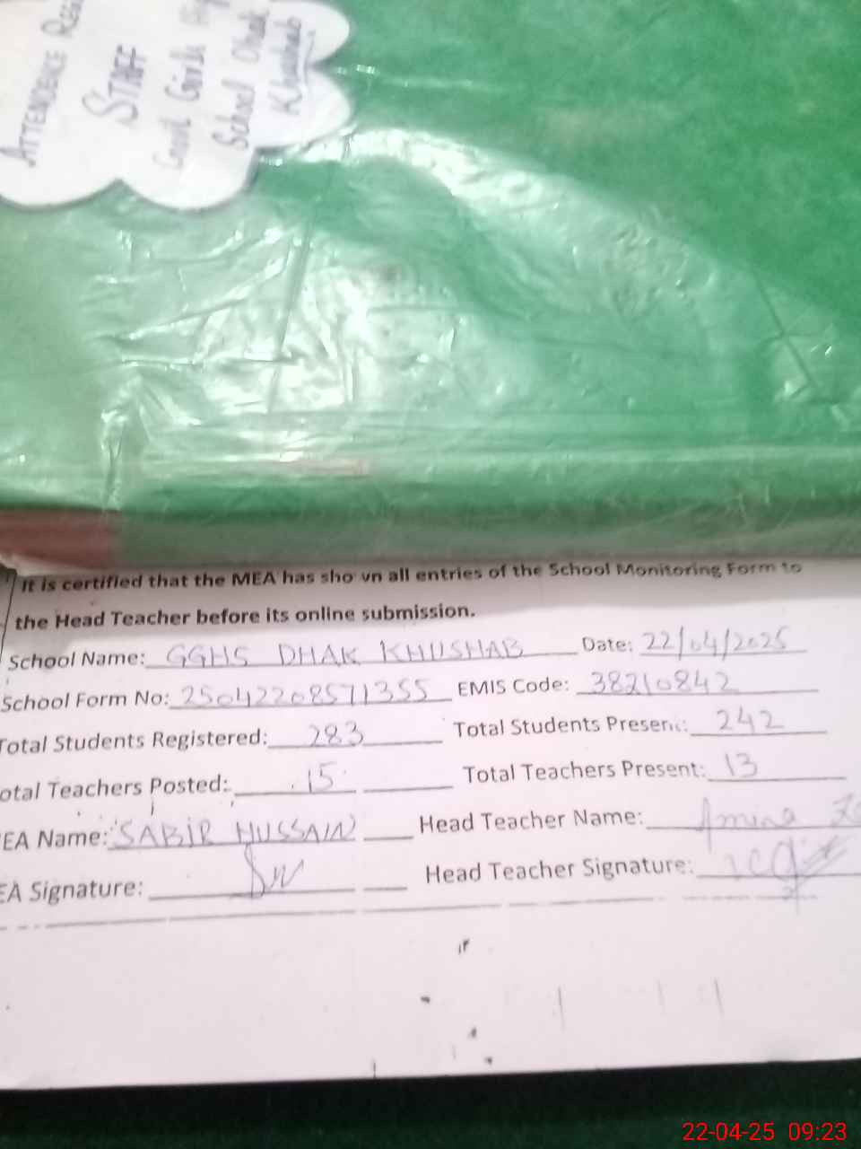 | EMIS Code: 38210842 | Name of School: GGHS DHAK KHUSHAB | |||
