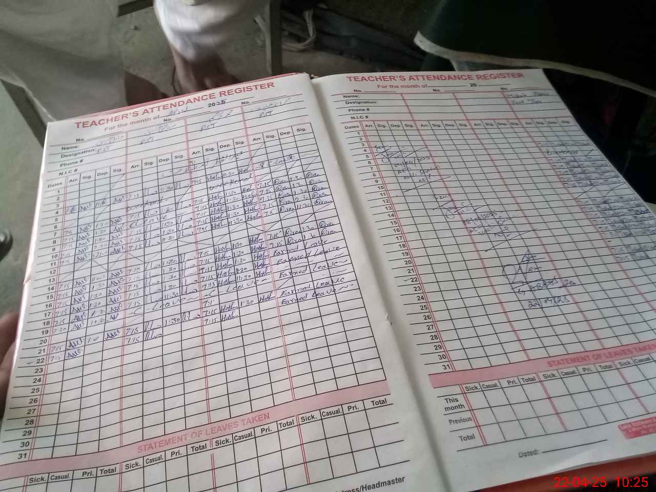 | Name: AB**** RA**** Designation: (School Headmaster's/Headmistress's) PTC/JV Phone/Cell Number: 03**** |