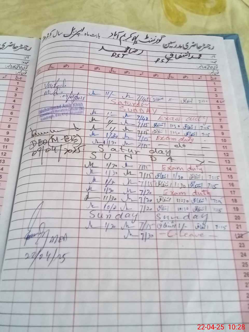 | Name: Za**** Iq**** Designation: (School Headmaster's/Headmistress's) PST/ Phone/Cell Number: 03**** |