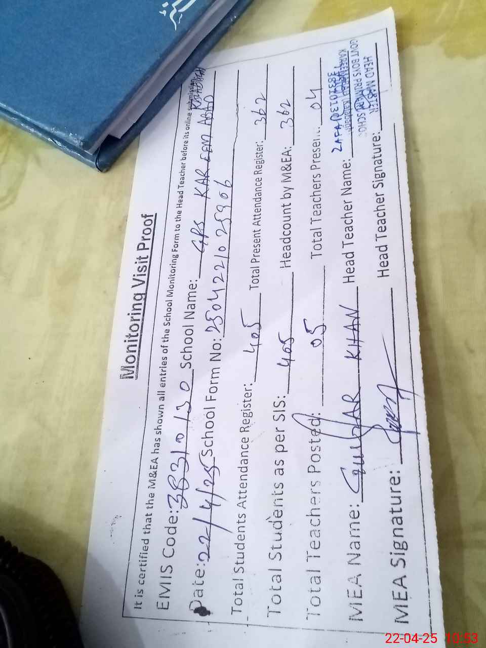 | EMIS Code: 38310130 | Name of School: GPS KAREEM ABAD KALABAGH | |||