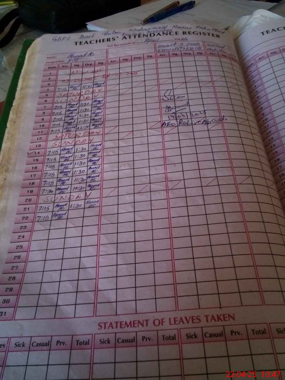 | Name: Ah**** Al**** Designation: (School Headmaster's/Headmistress's) PST Phone/Cell Number: 03**** |