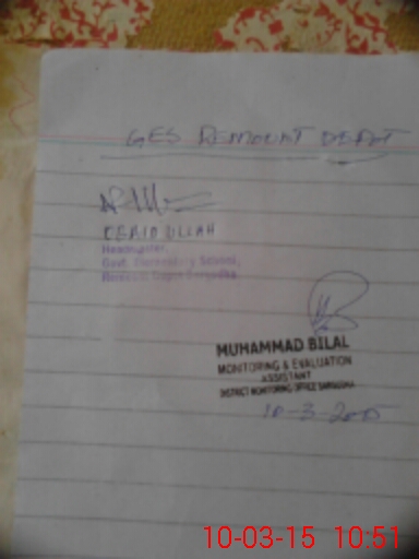 | Name: Zu**** Al**** Designation: (School Headmaster's/Headmistress's) Incharge Phone/Cell Number: 03**** |