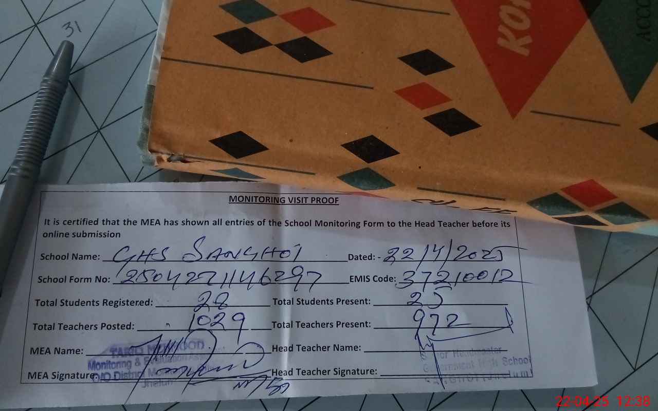 | EMIS Code: 37210012 | Name of School: GHS SANGHOI | |||
