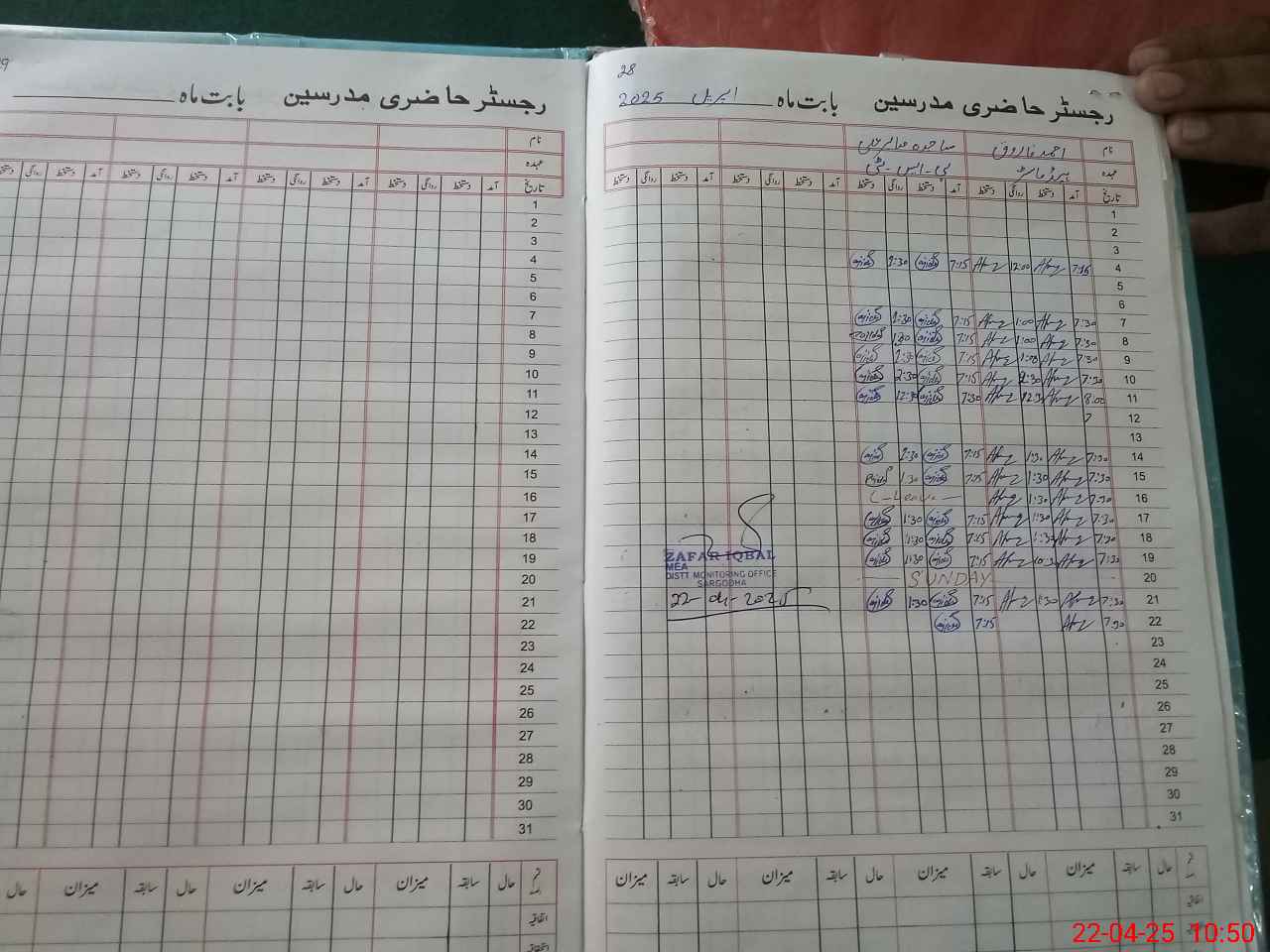| Monitoring Date: 22-04-2025 | Start Time: 22-04-2025 10:09 AM | End Time: 22-04-2025 10:51 AM | Name of MEA: ZA**** IQ**** | |
