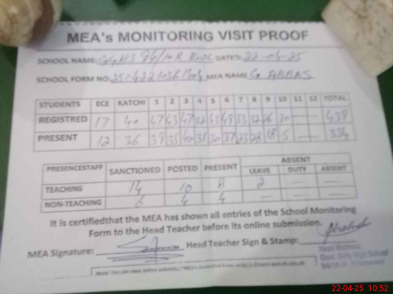 | EMIS Code: 36420098 | Name of School: GGHS 94/10-R, KHANEWAL | |||