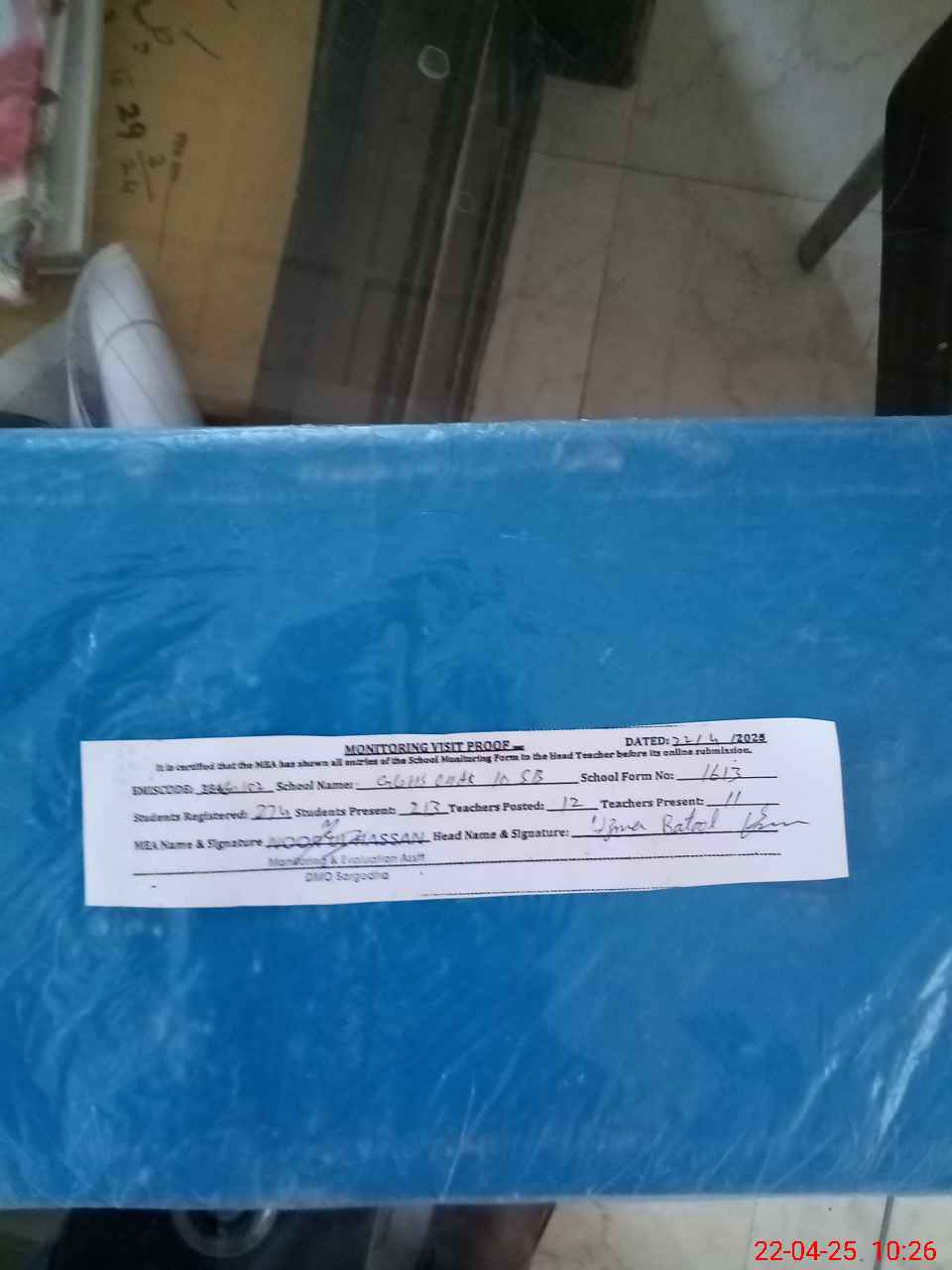 | Attendance Register | Head Teacher | MEA with School | Visit Proof |