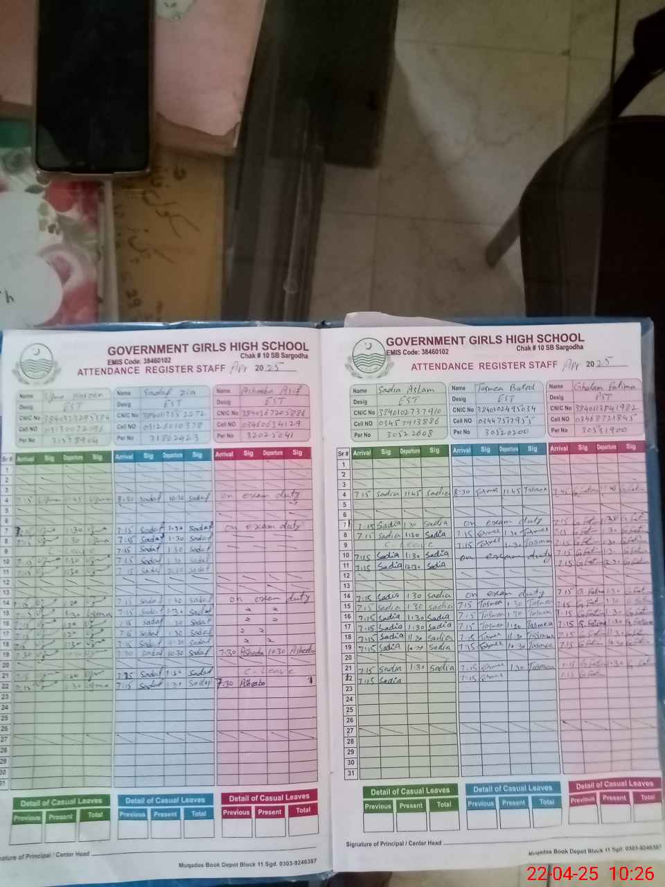 | CNIC | Full Name | Designation | R/C | Absence during last cal. month |