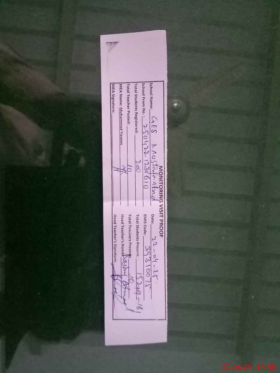 | EMIS Code: 39310075 | Name of School: GHS MUSTAFABAD | |||