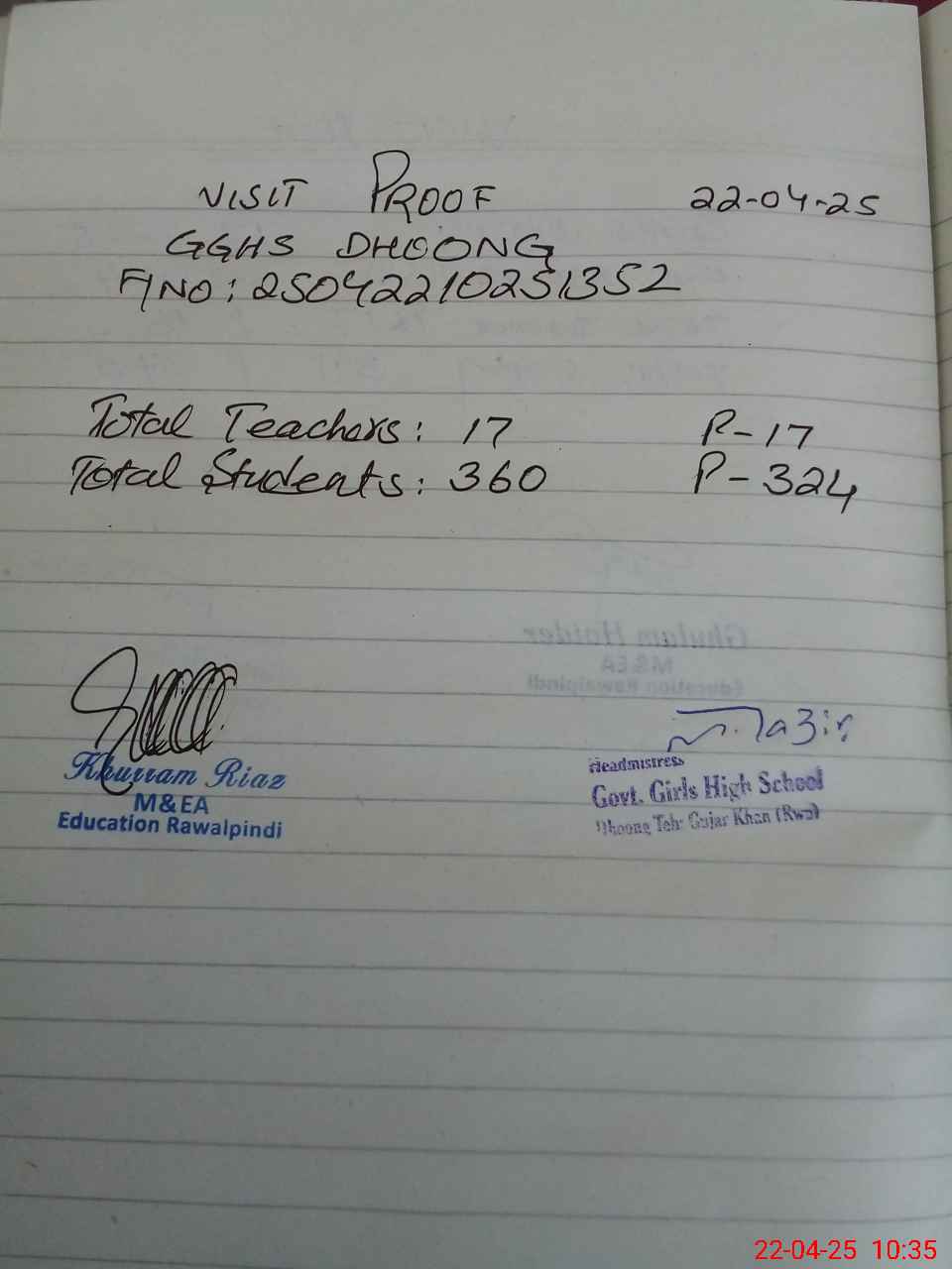 | EMIS Code: 37360124 | Name of School: GGHS DHONG | |||