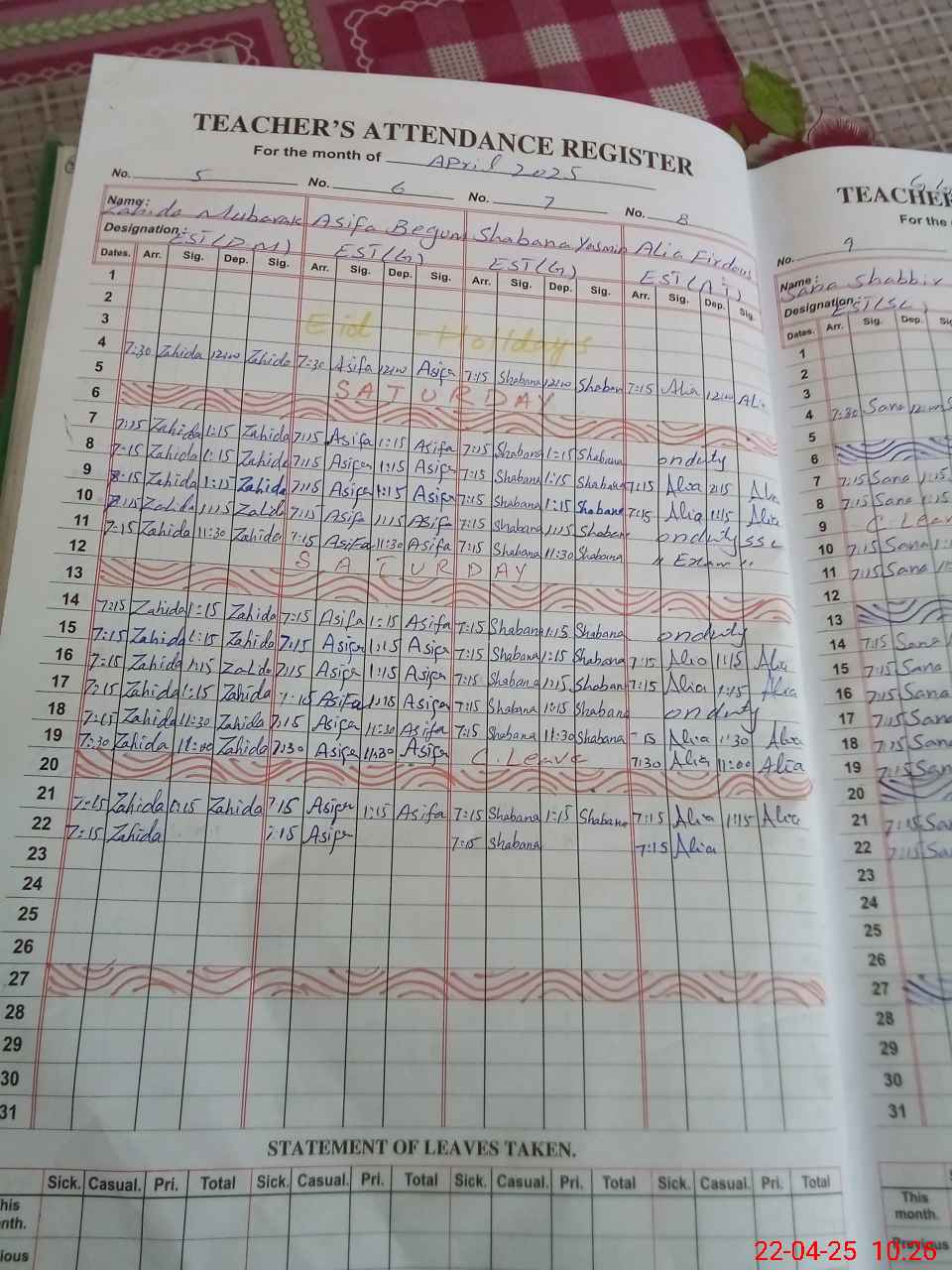 | Leave | Duty | Absent | Maternity | Medical | Ex- Pak |