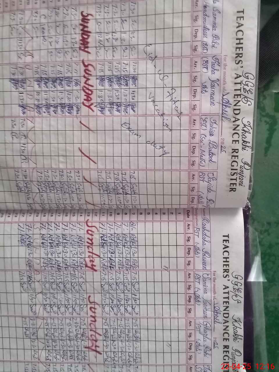 | CNIC | Full Name | Designation | R/C | Absence During Last Calender Month |