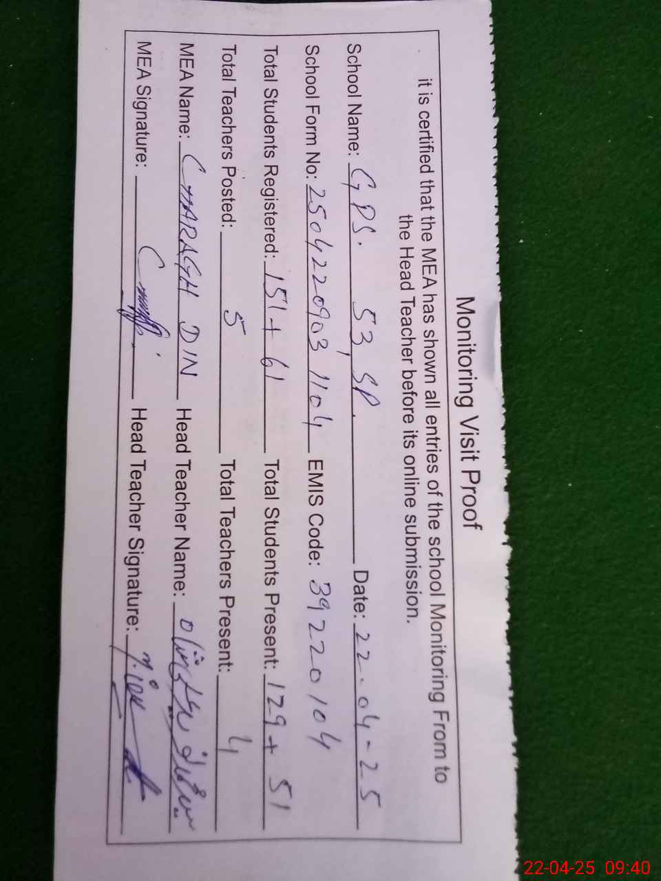 | EMIS Code: 39220104 | Name of School: GPS 53 SP | |||