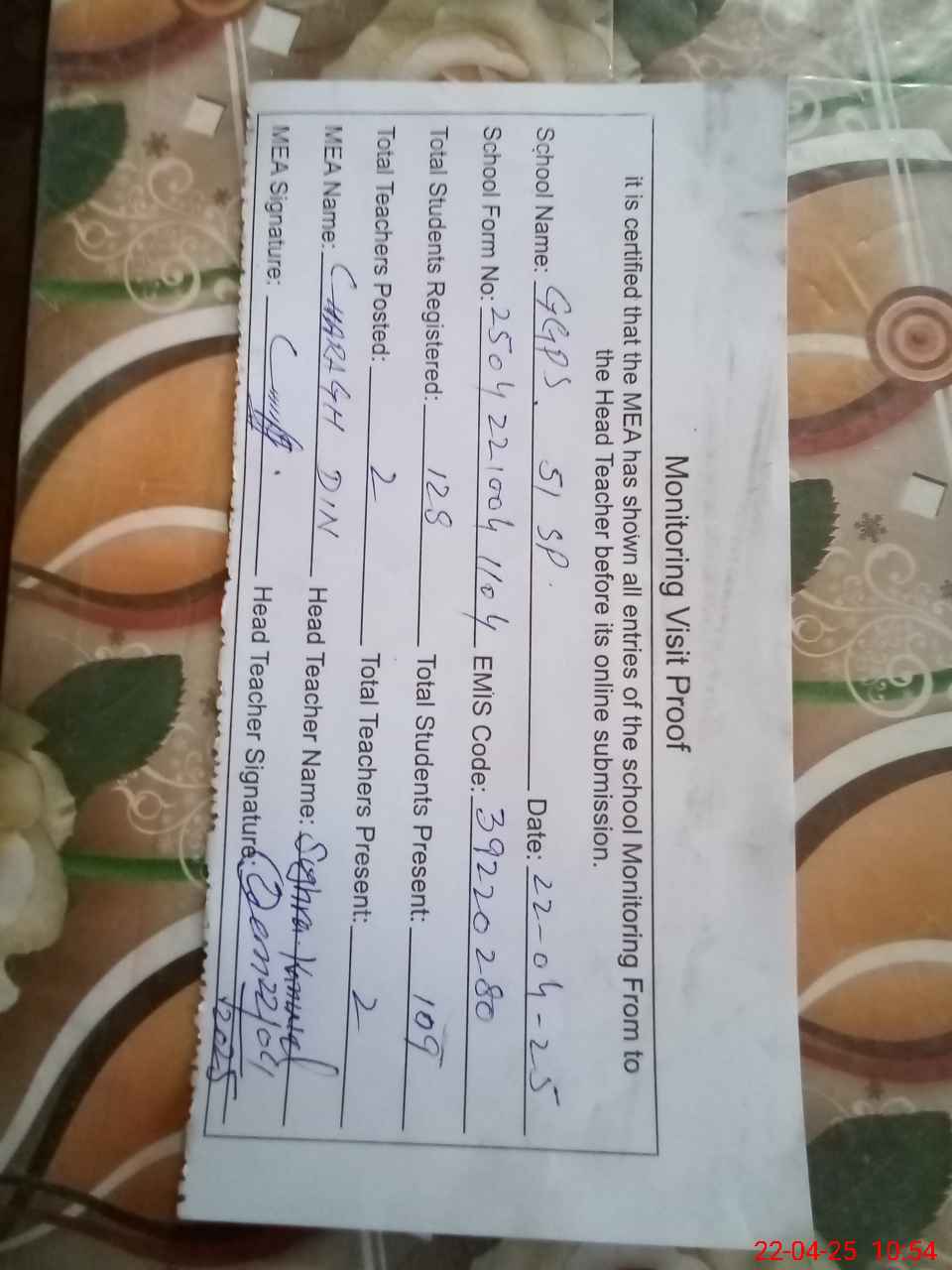 | EMIS Code: 39220280 | Name of School: GGPS 51 SP POST OFFICE JEVAN SHAH | |||