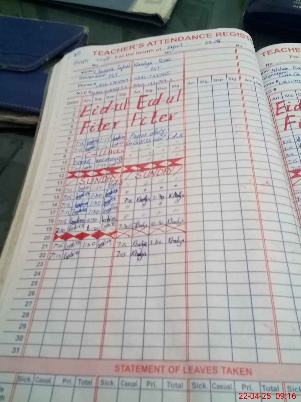 | Name: UM**** IQ**** Designation: (School Headmaster's/Headmistress's) PST Phone/Cell Number: 03**** |