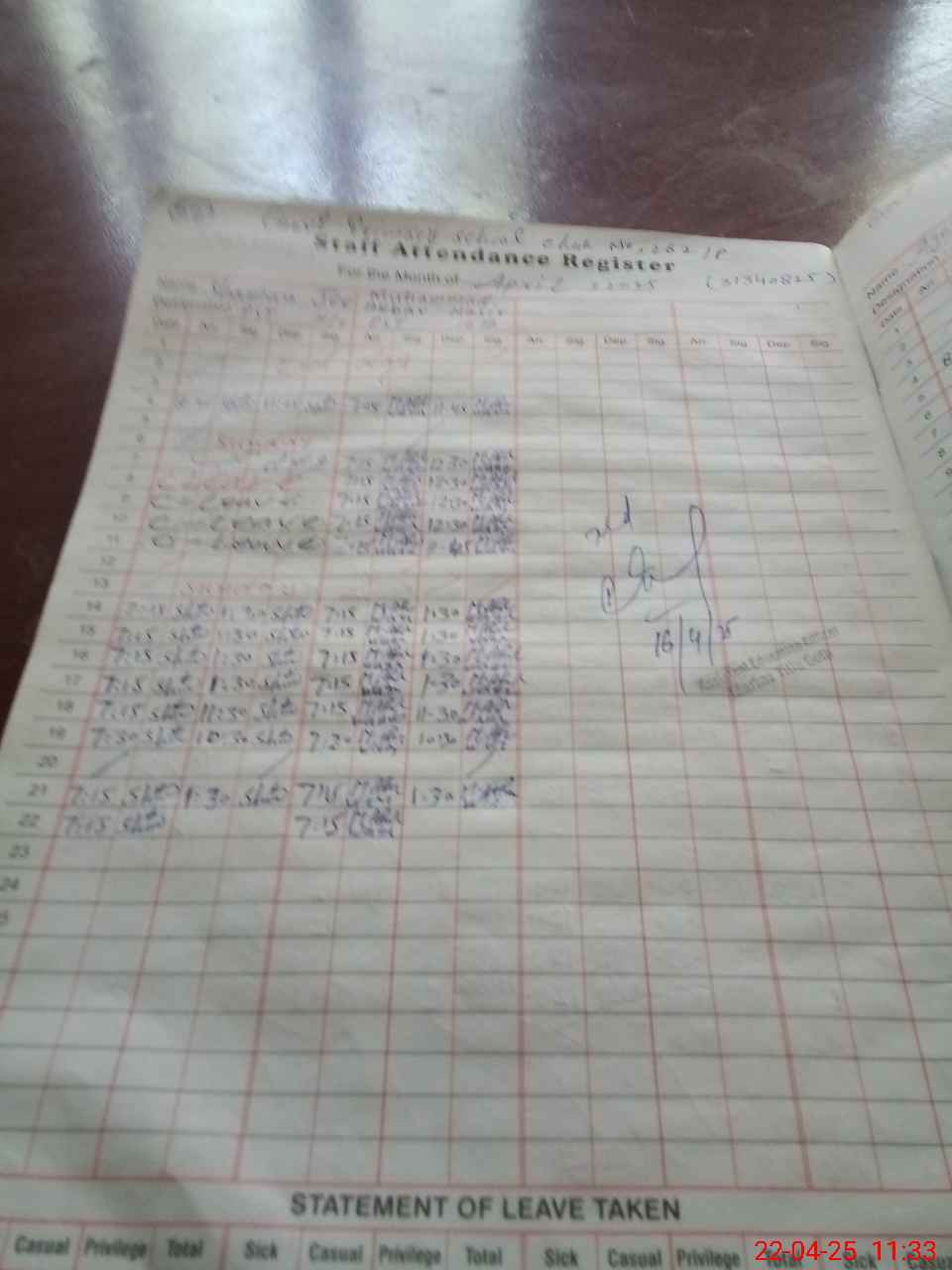 | CNIC | Full Name | Designation | R/C | Absence During Last Calender Month |