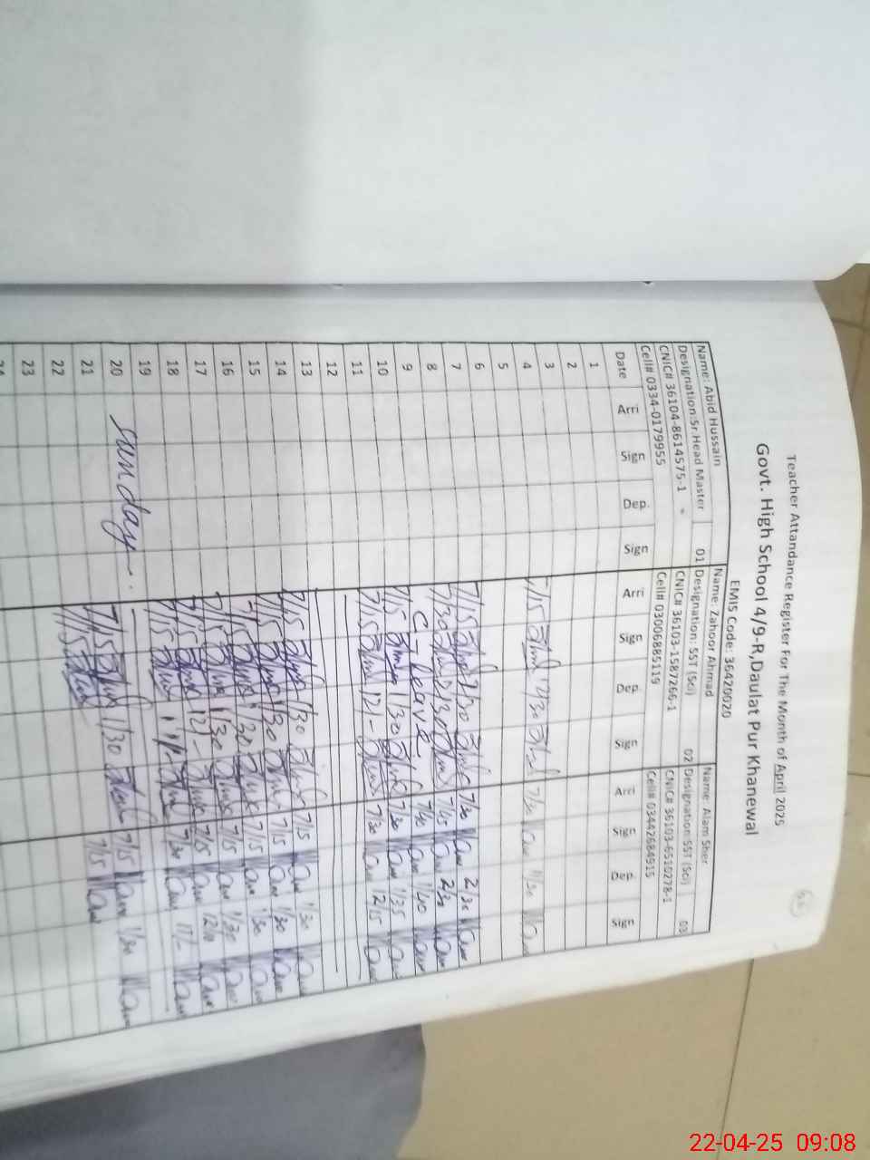 | EMIS Code: 36420020 | Name of School: GHS 4/9-R DAULAT PUR, P/O 7/9-R, KACHA KHUH | |||