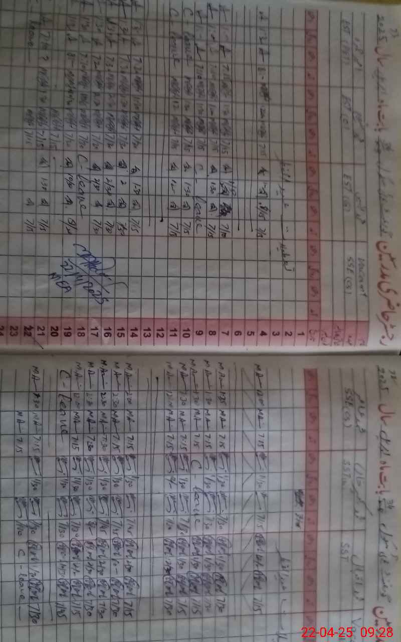 | CNIC | Full Name | Designation | R/C | Absence During Last Calender Month |