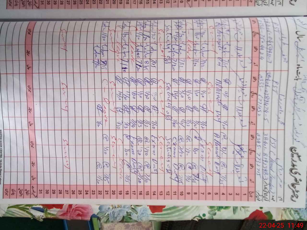 | CNIC | Full Name | Designation | R/C | Absence During Last Calender Month |