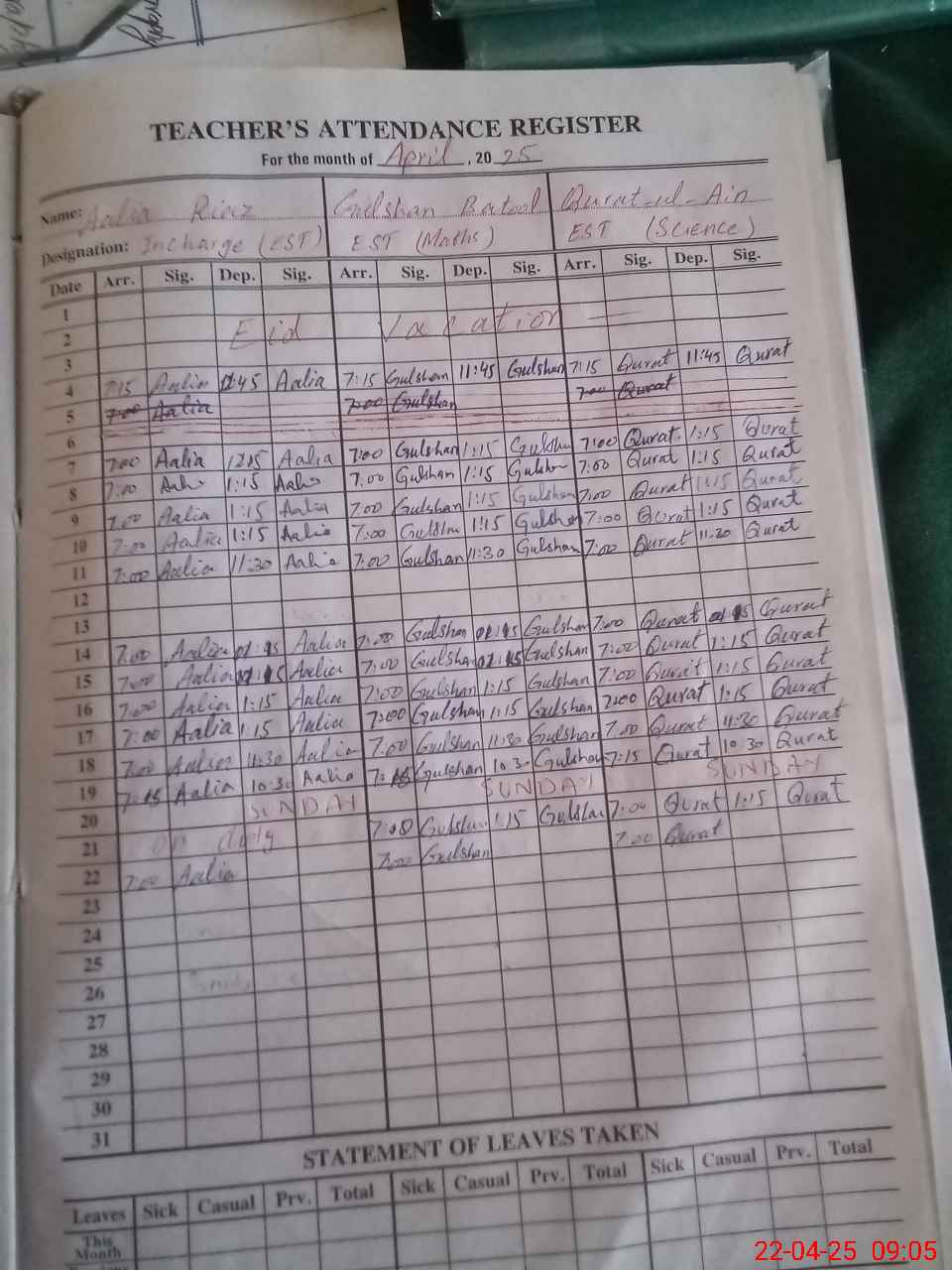 | 33**** | Ra**** Na**** | CHOWKIDAR | Regular | 0 | 0 | 0 | 0 | 0 | 0 | 0 | 0 | 0 | Casual |