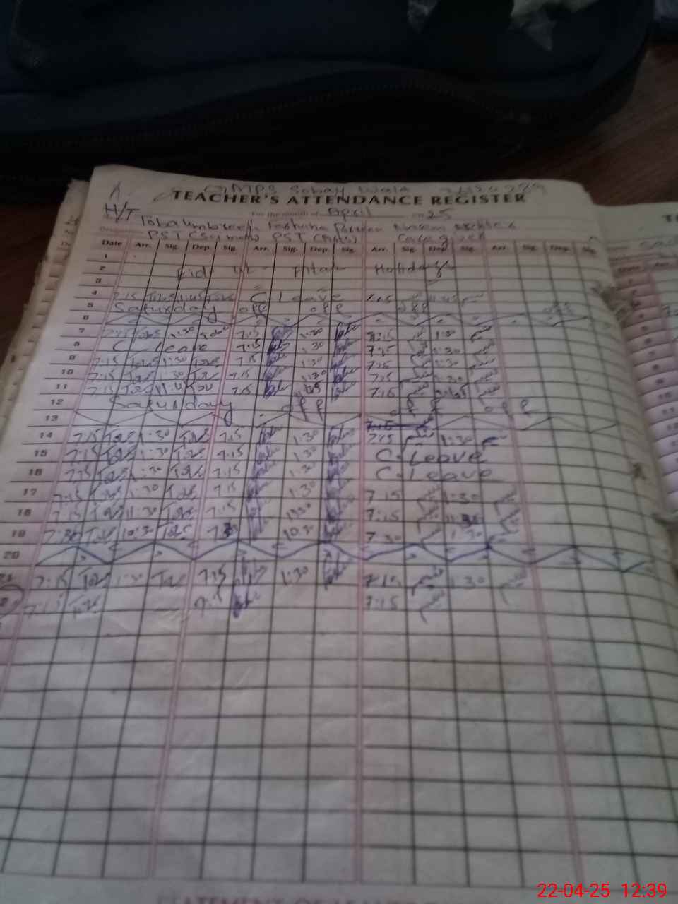 Leave Type | Remarks for today (Leave,Training, Exam,Absent,Late, Other duty) |