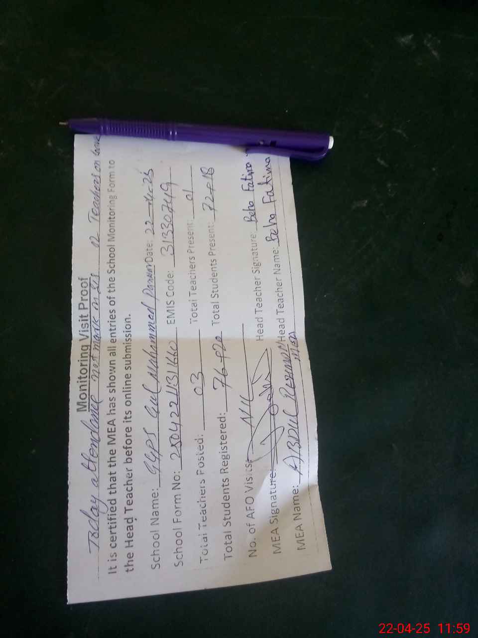 | EMIS Code: 31330749 | Name of School: GGPS GUL MUHAMMAD PANWAR | |||